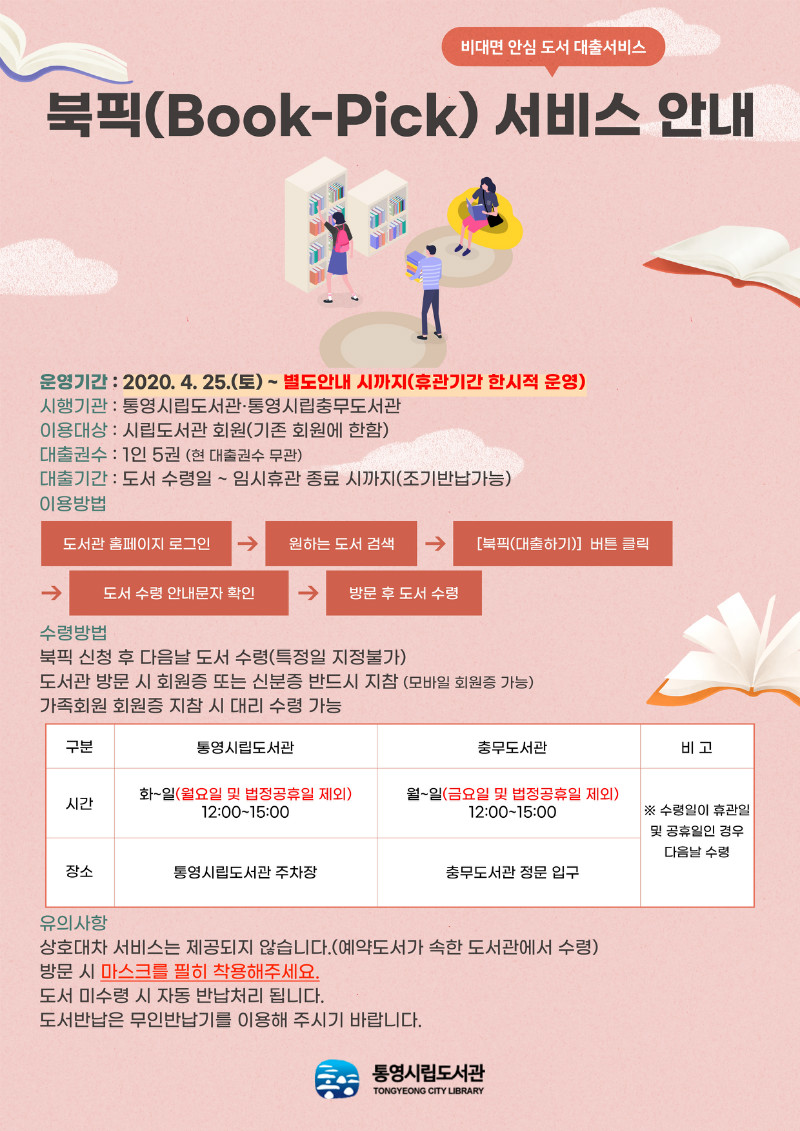 통영시립도서관 비대면 안심도서 대출서비스 안내