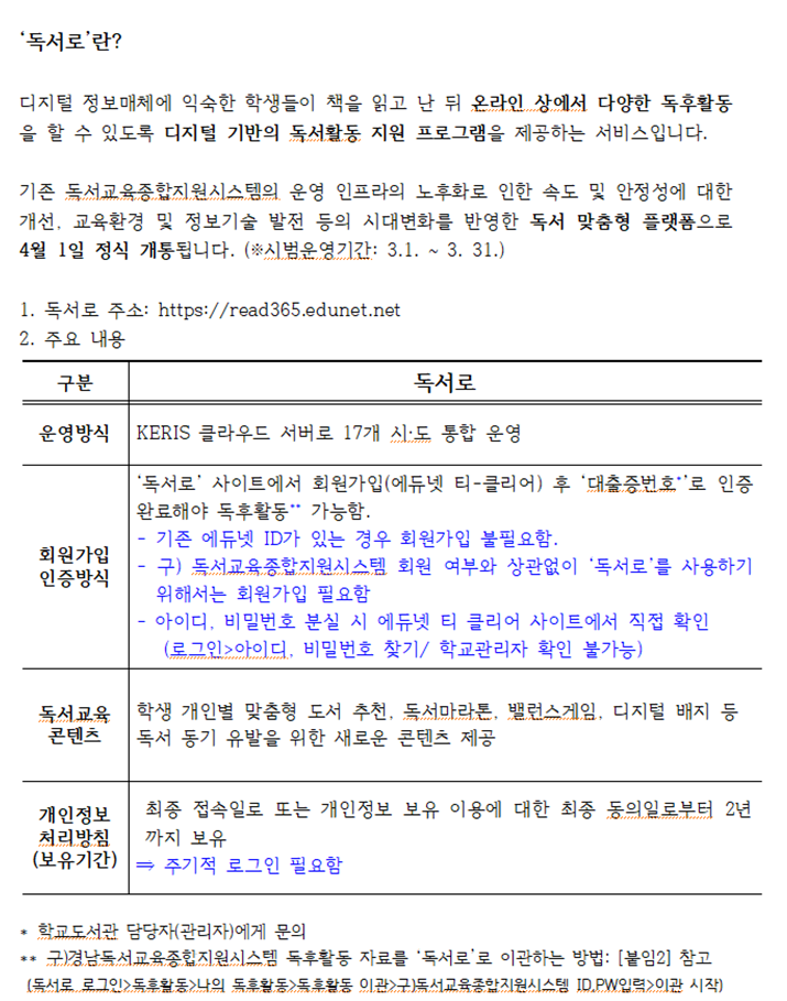 독서교육종합지원시스템 학생 독후활동 이관방법