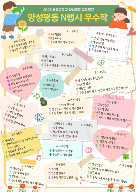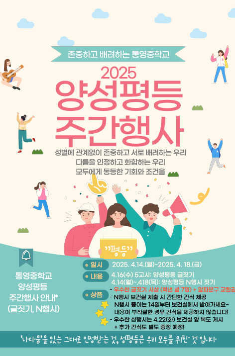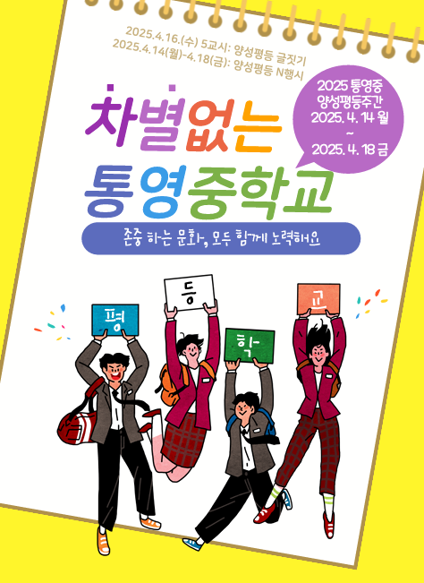 앞으로도 통영중 학생들이 서로 존중하며 올바른 양성평등 의식을 키워 행복한 삶을 살아갈 수 있도록