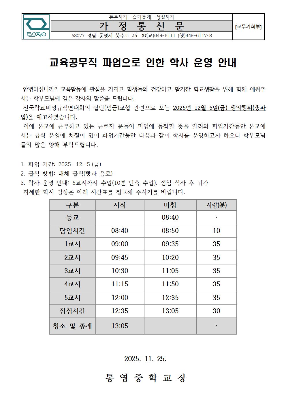 교육공무직 파업으로 인한 학사 운영 안내 가정통신문.pdf